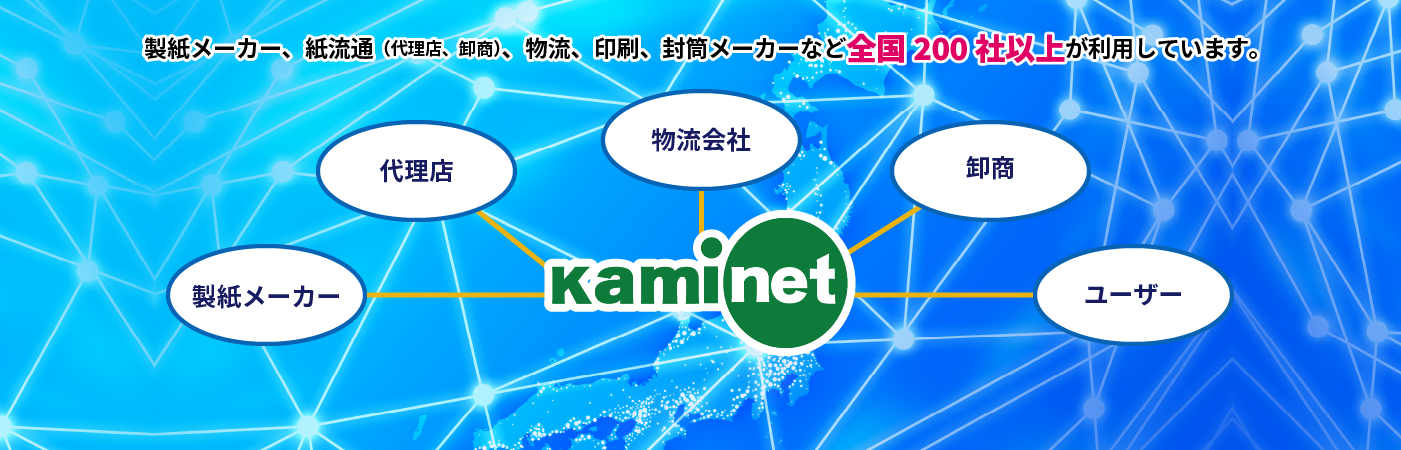 企業間における取引情報をお互いにデータ化し、通信回線を利用して運用するシステムです。 カミネットは紙業界標準のEDI サービスを提供しています。